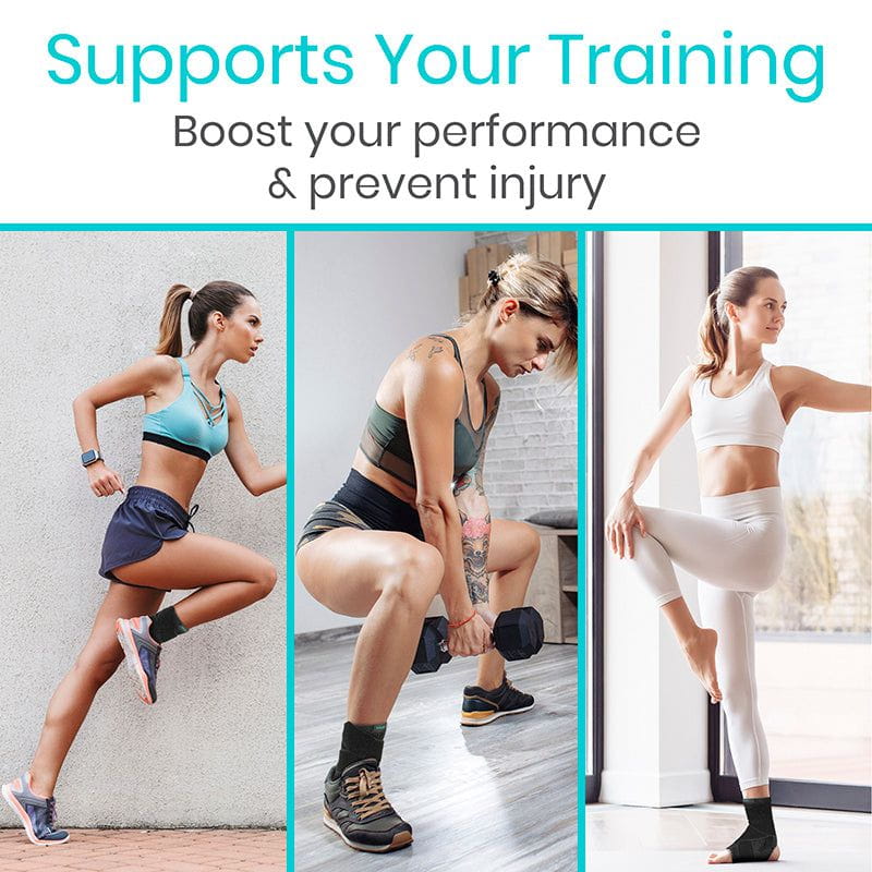 Las bandas de compresión de abrazadera cruzada ajustables proporcionan la cantidad óptima de presión para un soporte cómodo y un alivio efectivo del dolor. La abrazadera de compresión de neopreno también retiene el calor terapéutico y aumenta la circulación sanguínea para promover la curación de lesiones o cirugía. Proporciona soporte personalizado para tobillos débiles o doloridos.
