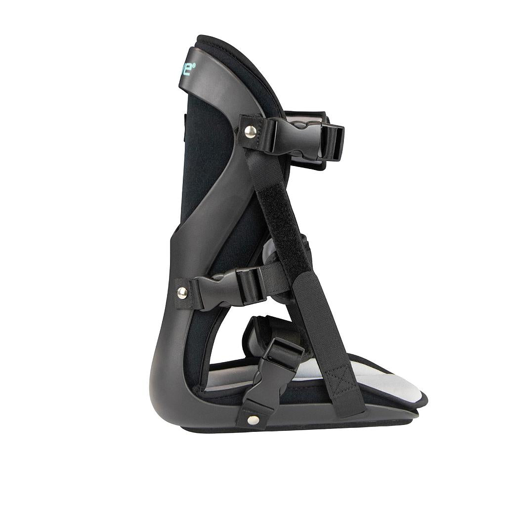 Para quitar: desabrochar cada correa y deslizar el pie fuera de la férula