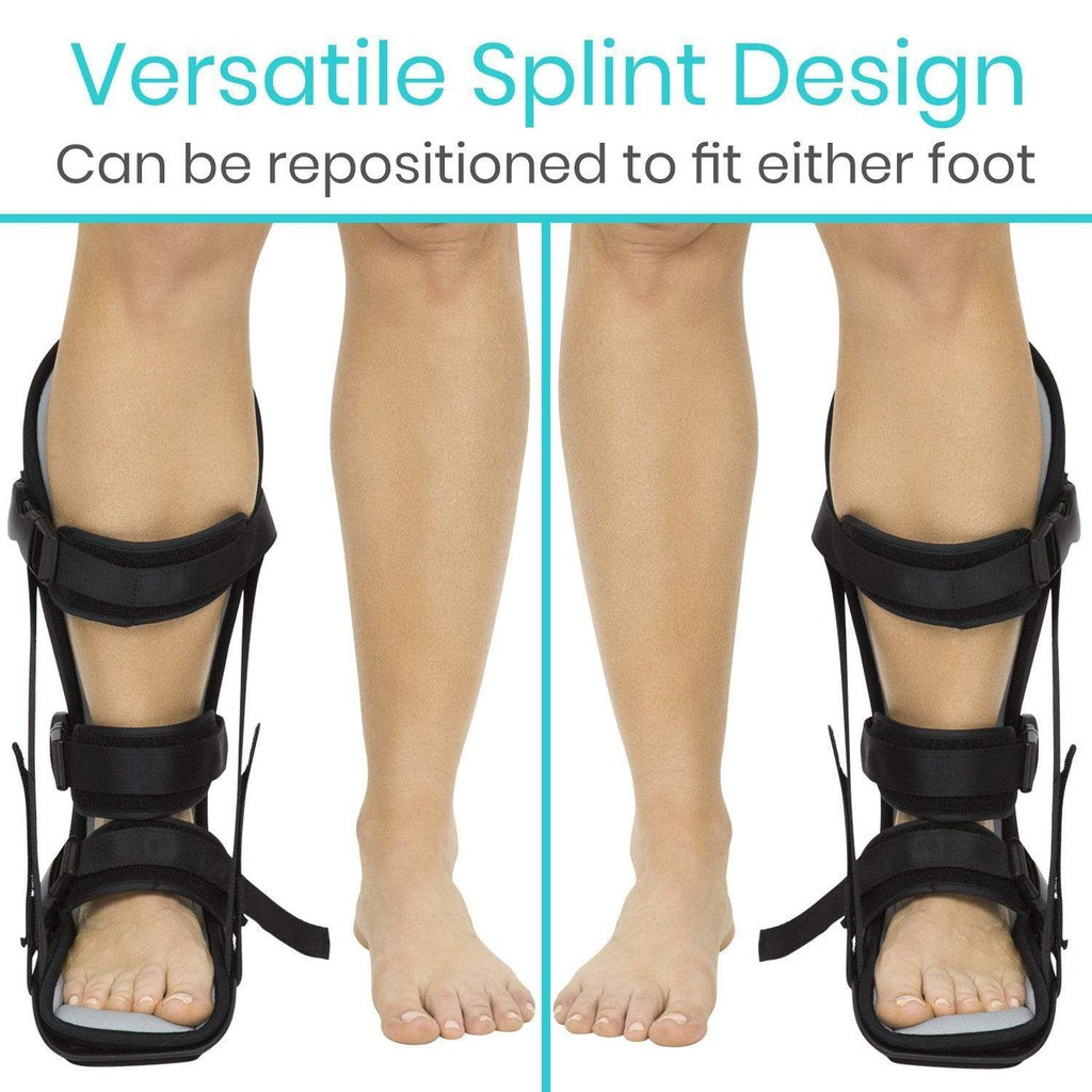 Manteniendo una posición neutra del pie que estira suavemente la fascia plantar, la férula nocturna dura Vive reduce el dolor y la inflamación debido a la fascitis plantar, el pie caído y la tendinitis de Aquiles. Estirando suavemente el pie, la férula se usa durante toda la noche para aliviar los primeros pasos dolorosos por la mañana. El exterior rígido sostiene la pantorrilla, el tobillo y el pie para que pueda descansar cómodamente.